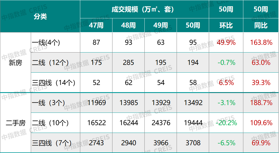 举座阛阓:50周30城新址成交面积环比同比均增长、二手房成交套数同比增幅超100%