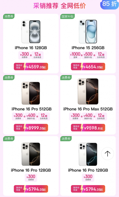 除了iPhone 17系列产物有优惠外,念念换新iPhone上代产物的果粉也有福利。iPhone 16 128G版,可使用300元糜掷券,得手价低至4559.05元;iPhone 15 256G版,限时直降1000元,还能重叠国度补贴500元,得手价低至4654.05元;iPhone 16 Pro 512G版,可使用300元糜掷券,再重叠以旧换新补贴400元,得手价低至8999.35元。况兼,以上机型相似均可救济12期免息,部分产物PLUS会员还有专享立减优惠,得手价钱更低。