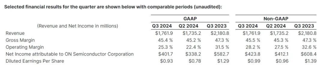 安森好意思半导体第三季度营收环比增长2%至17.6亿好意思元,顺应预期;非公认管帐准则每股收益为0.99好意思元,同比增长0.02好意思元;调养后生意利润为4.965亿好意思元,超出分析师预期的4.834亿好意思元。