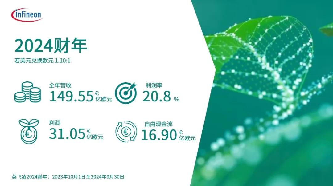 关于英飞凌来说,2024财年的功绩举座不如预期。2024财年营收为149.55亿欧元,同比下落8%;利润为31.05亿欧元;利润率为20.8%;调养后每股收益1.87欧元;解放现款流为2,300万欧元,调养后的解放现款流为16.90亿欧元。公司展望2025财年营收将比上一财年略有下落,调养后的毛利率展望在40%支配,利润率为14%~19%,展望投资额约为25亿欧元。