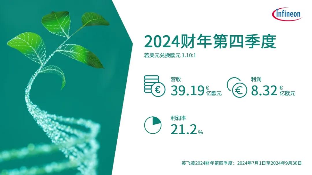 英飞凌2024年第四财季收入为39.19亿欧元,较上年同期下落6%,与公司预测的40亿欧元基本一致,但低于分析师平均预期的39.8亿欧元。部门功绩利润率为21.2%,而去年同期为25.2%。